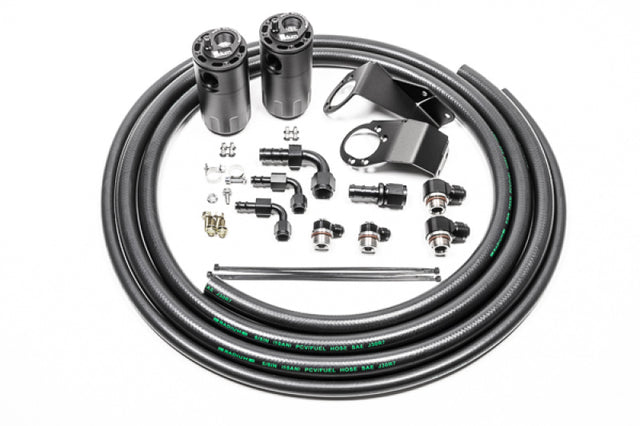 Dual catch can kit for the Nissan S13. Interfaces with both PCV line and crankcase vent line. Includes all parts necessary for easy bolt-in installation.