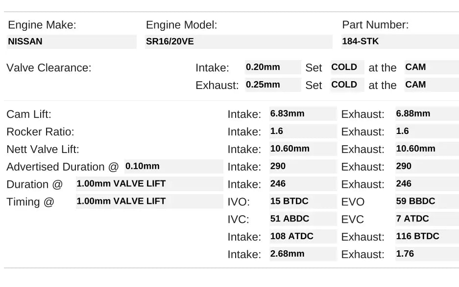 184-STK | SR16VE / SR20VE Turbo