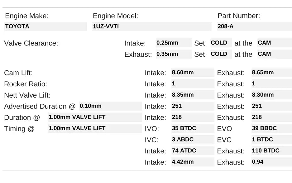 208-A | 1UZ-3UZ VVTi N/A